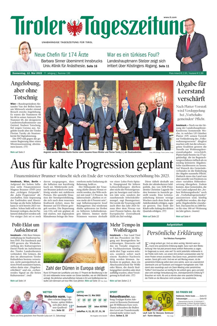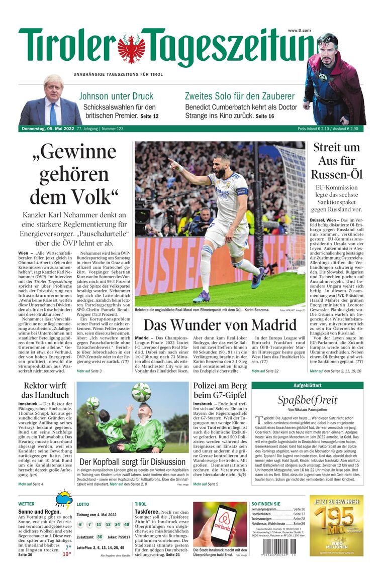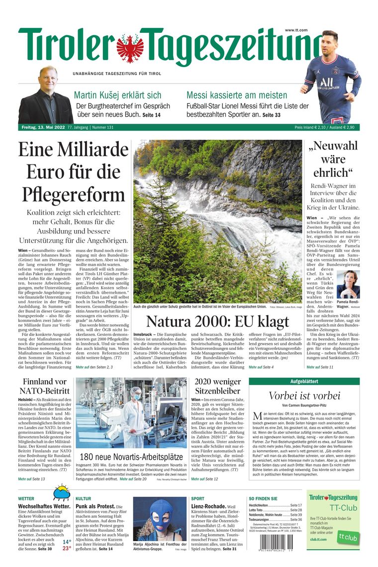 Vielen Dank, dass Sie sich entschieden haben, die Tiroler Tageszeitung zu lesen. Im TT-ePaper verbinden wir das vertraute Layout der gedruckten Zeitung mit digitalem Lesekomfort. Wir bedanken uns für Ihr Vertrauen und wünschen Ihnen viel Spaß beim Lesen.