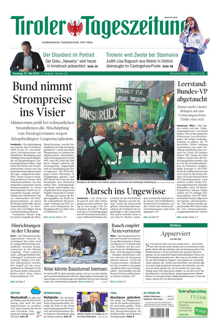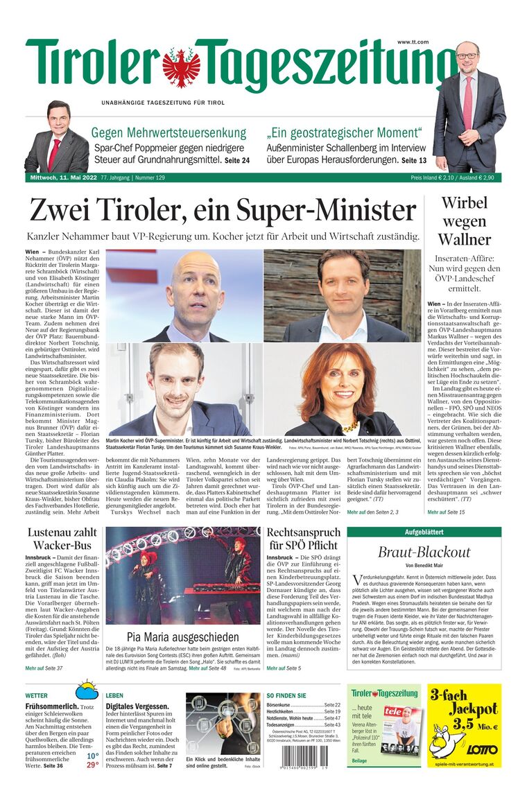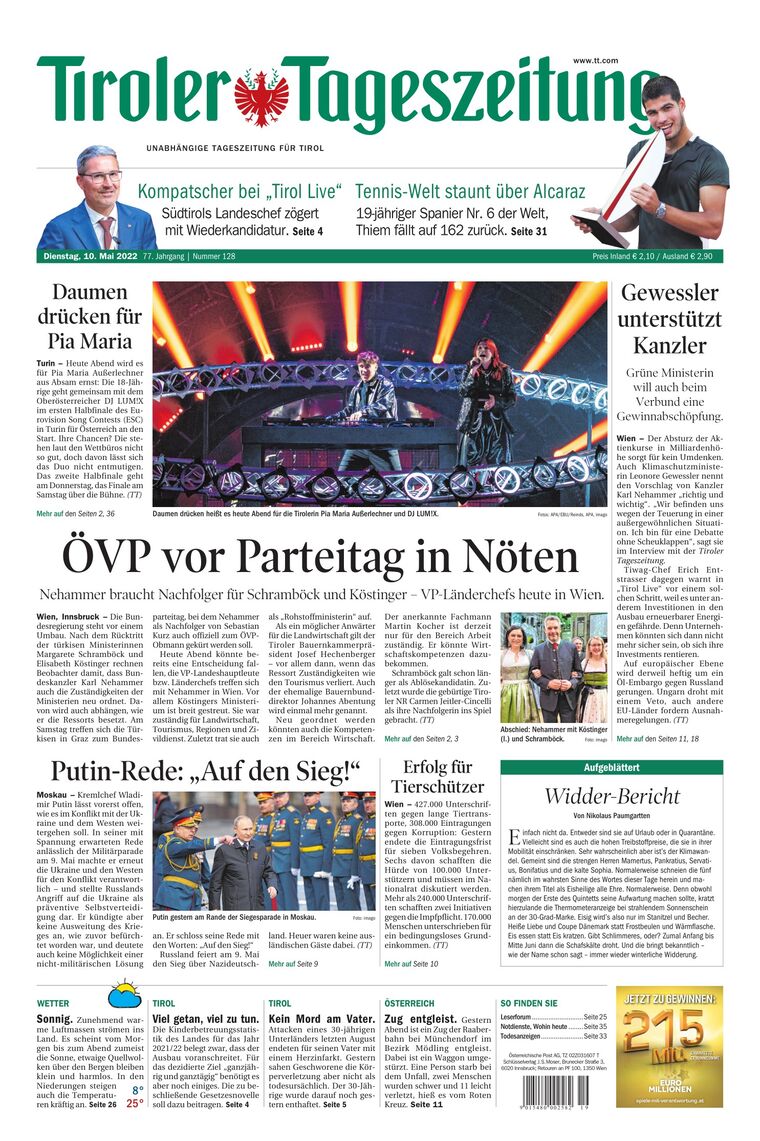 Ihr Einstieg in die Welt der Tiroler Tageszeitung - auf dieser Startseite erhalten Sie einen Überblick über das umfängliche Angebot auch abseits des ePapers. - Merkliste